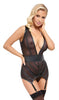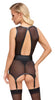 The set from Cottelli LINGERIE contains a basque and string. Everything is made out of black powernet with stylish details that are made out of matte look material. It is soft and stretchy for a very comfortable fit. The basque is very low cut at the front – it goes right down to the matte look waist insert. There are also matte look stripes on the basque which create a beautiful silhouette. It is also low cut at the back as well. There is a press stud fastener at the back of the neck. The suspender straps can be adjusted to fit.
