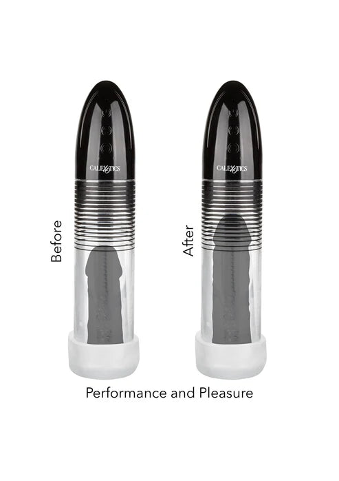 Maximize your pleasure tool with the Optimum Series Executive Automatic Smart Pump, a massive penis pump made for bigger and better results with every use. Increase endurance, improve stamina and amplify your rod with 3 unique enhancement exercise modes. The extra-large smart pump has easy-touch controls and a quick air release button for customizable pumping. While the thick open-end sleeve and tight, nubbed chamber give you sinful stroking pleasure with or without the pump. Never settle for less when it comes to the size of your pleasure with the Optimum Series®. The cylindrical pump and thick, durable sleeve are designed to create the perfect seal and powerful suction at the touch of a button. Once you've reached your peak pump, use the quick air release to decrease suction or release seal. When used regularly, this powerful pumper can increase stamina, enhance overall size and amplify sensation.