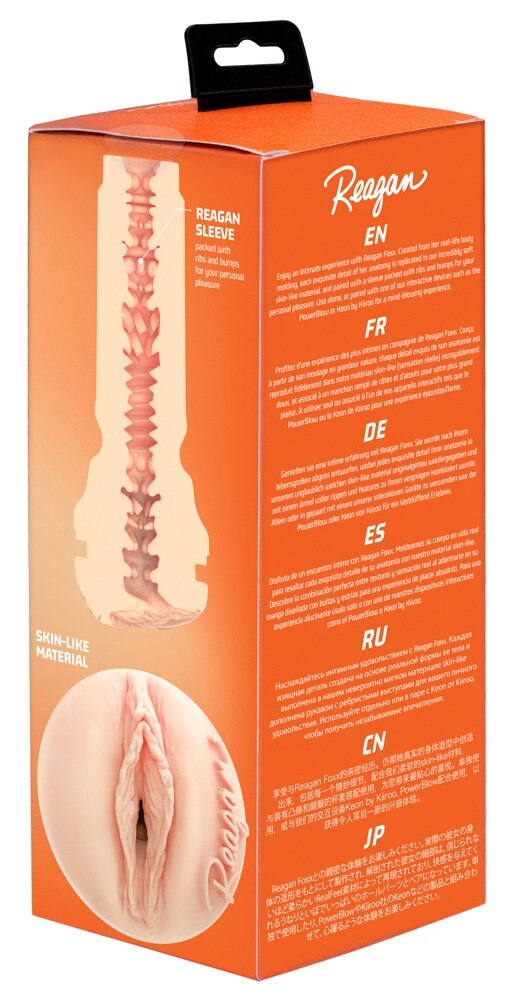 The masturbator, Feel Reagan Foxx from Kiiroo, has a realistic replica of Reagan Foxx's vagina. And the very diverse textures inside also feel a lot like Reagan's vagina – they can therefore provide an intense massage during a handjob. The inner sleeve is made out of soft, skin-like material and there is even Reagan's autograph next to the vulva as well. The sleeve can be easily removed from the discreet, easy-to-hold case for cleaning.