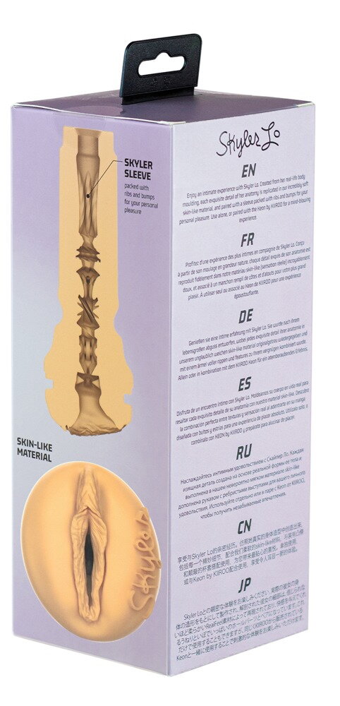 Feel Skyler Lo masturbator from Kiiroo with original moulded vagina opening by adult star Skyler Lo and signed with her autograph next to the labia. The very diverse textured interior comes very close to Lauren's tight vagina and provides an intense massage during a handjob. The sleeve made of skin-like, soft material can be easily removed from the non-slip, discreet casing for cleaning.